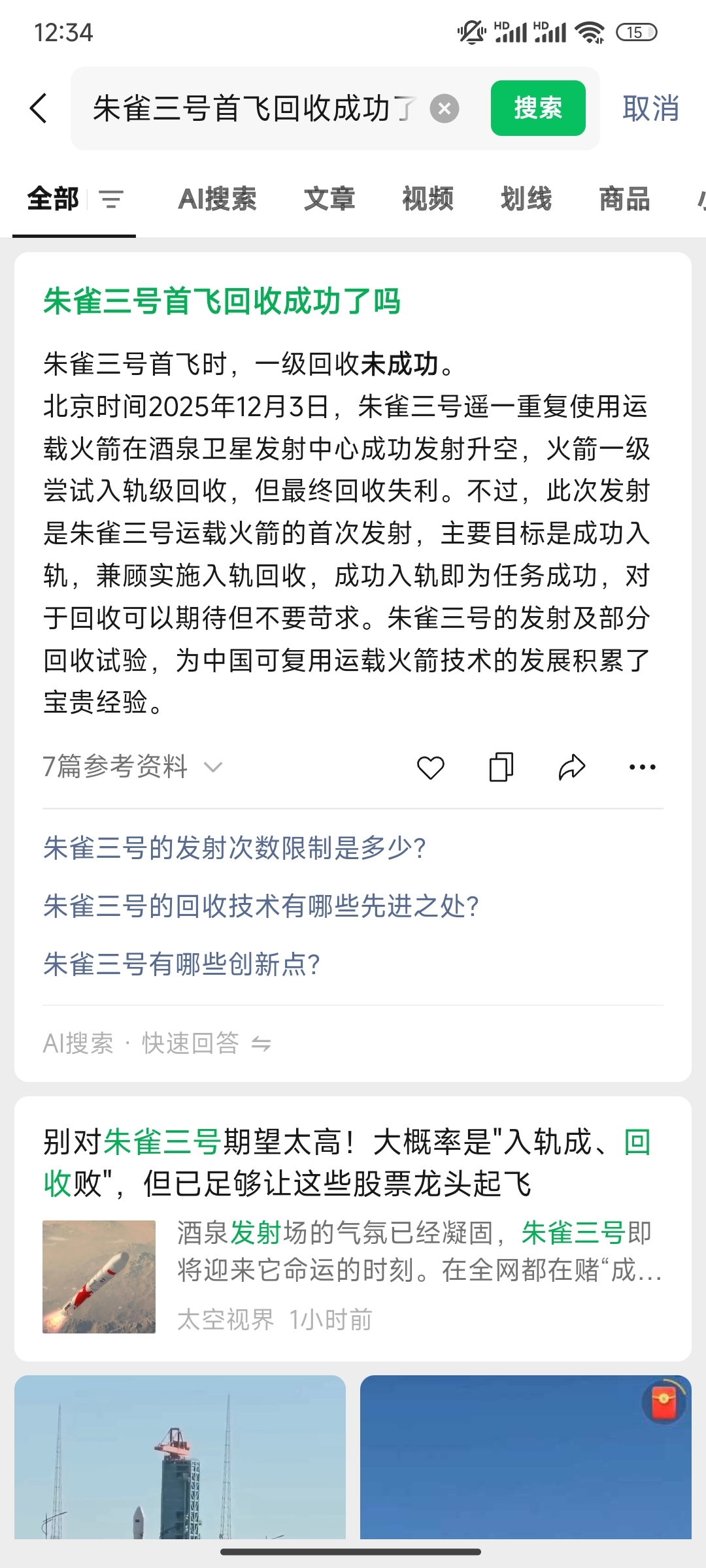 $雷科防务(SZ002413)$ 发射成功,回收失败,大家自行参考。