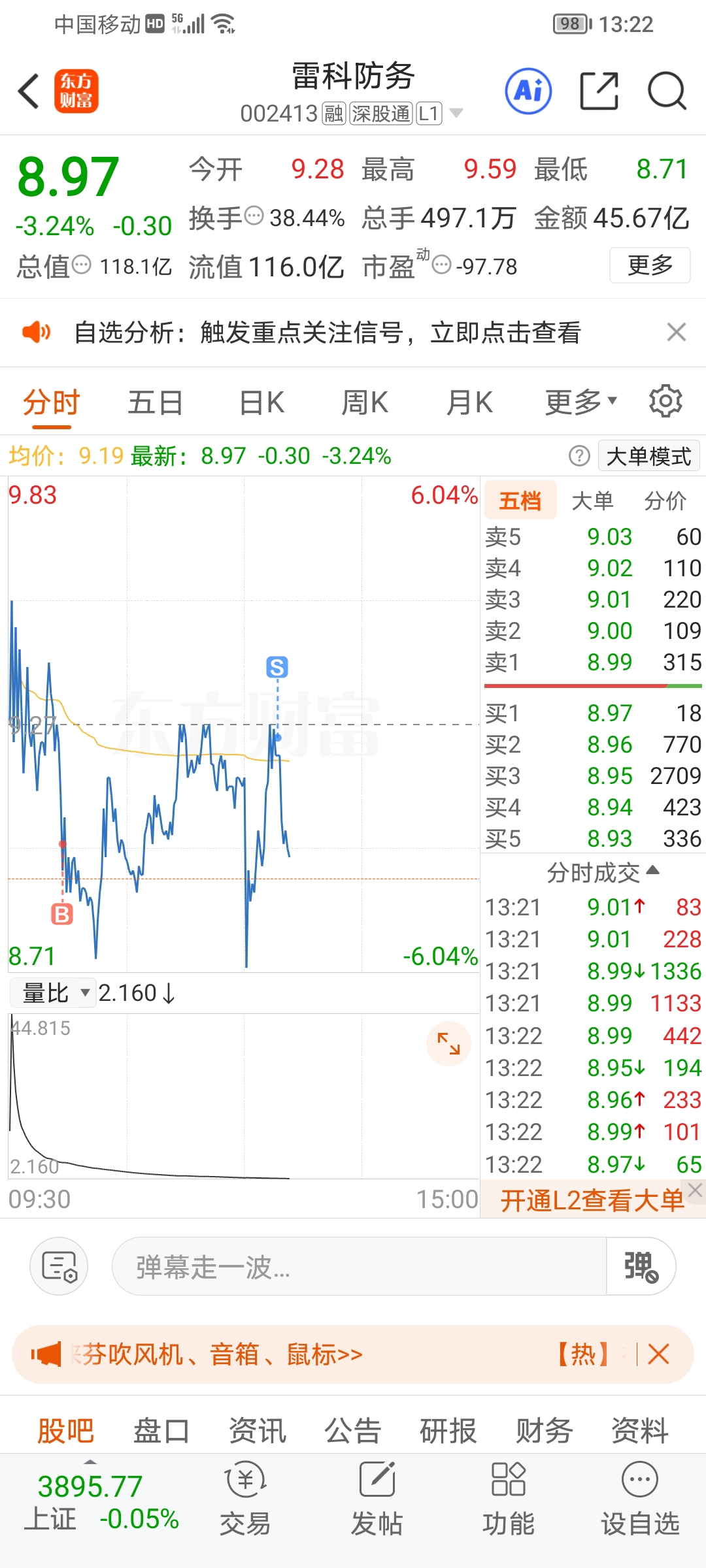 $雷科防务(SZ002413)$ 今天估计就这样了,没什么惊喜或者惊吓了?