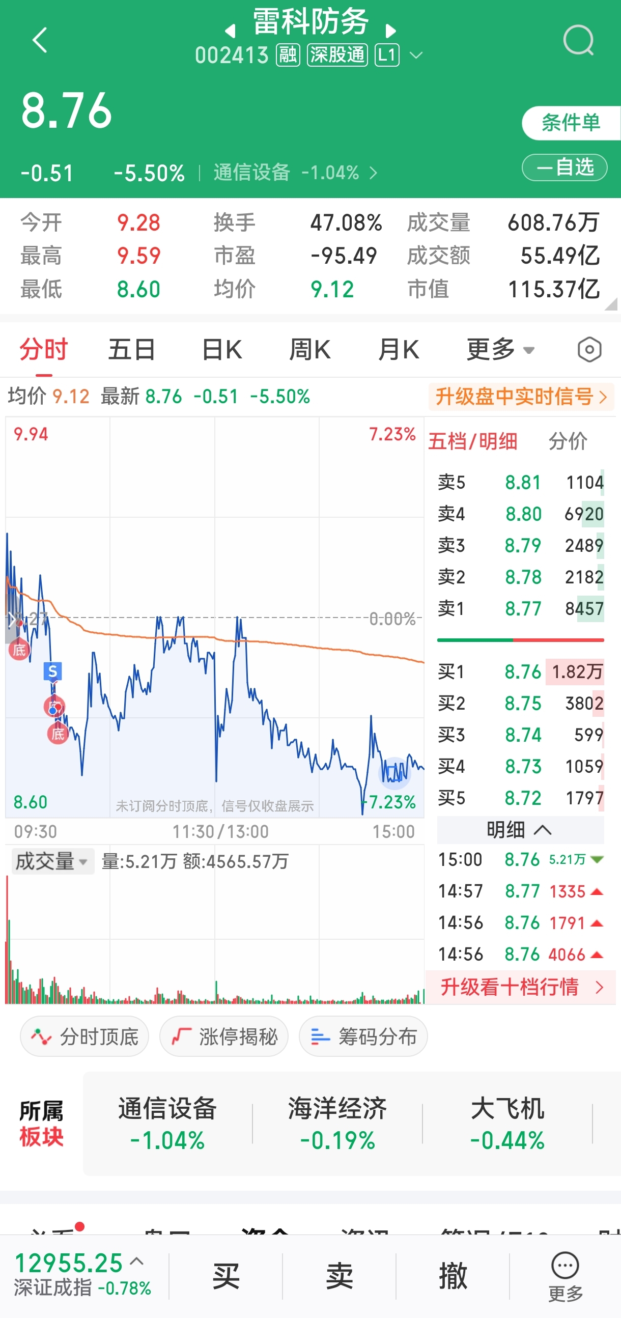 $雷科防务(SZ002413)$ 早盘设置了个条件单,成交以后以为被洗了
