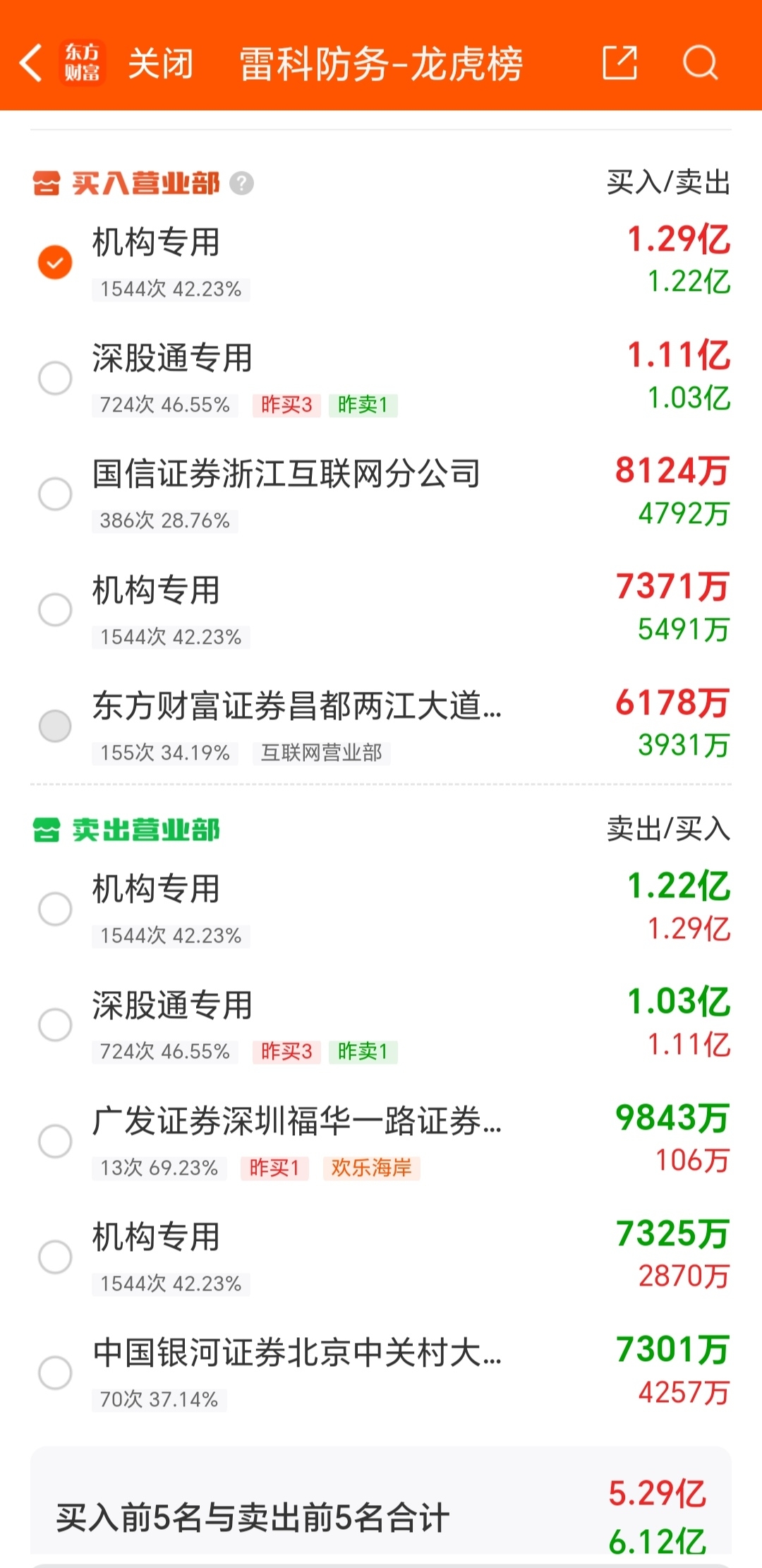 $雷科防务(SZ002413)$ 今天的榜,明天怎么走势?