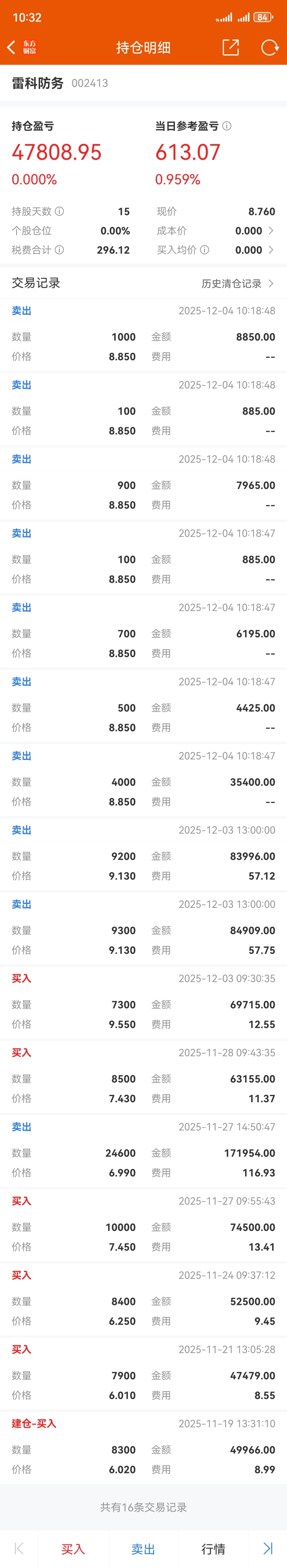 $雷科防务(SZ002413)$ 对这次操作只打60分,进场时机跟出场时机把握的很好,弱点在做T。谢谢雷科!