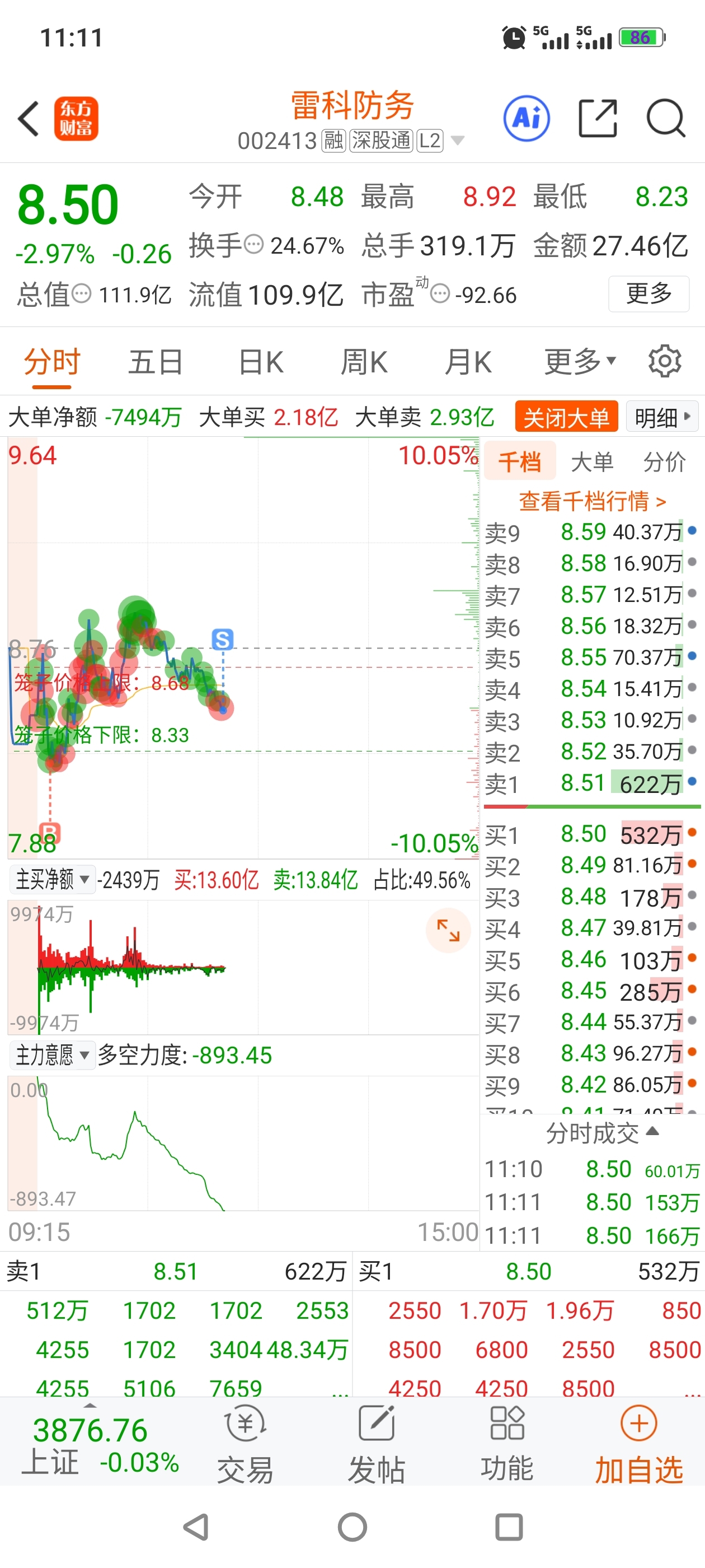 $雷科防务(SZ002413)$ 冲高没走,现在提桶跑路了