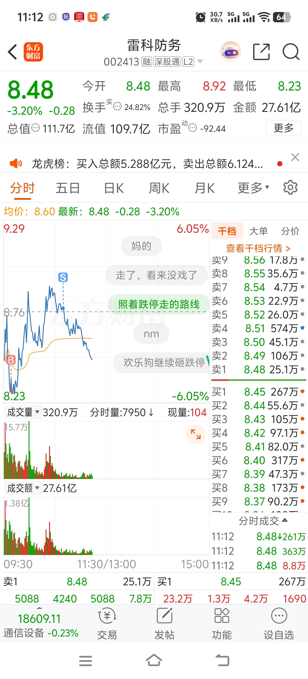 $雷科防务(SZ002413)$ t了一下,基本回本了。服了你个lj