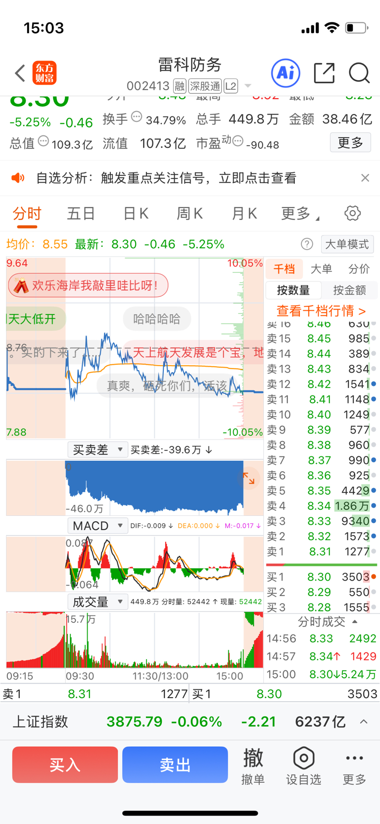 $雷科防务(SZ002413)$ 估计大哥真急了,还在发弹幕呢