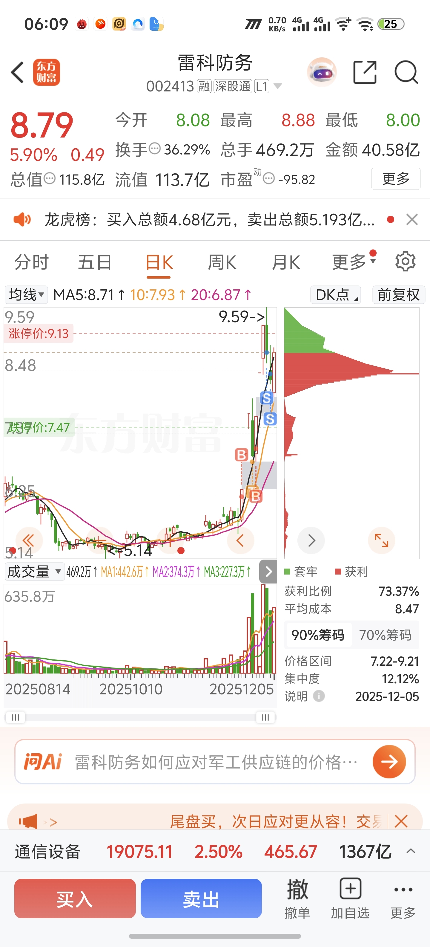 $雷科防务(SZ002413)$ 应该是卖飞了,但也还行