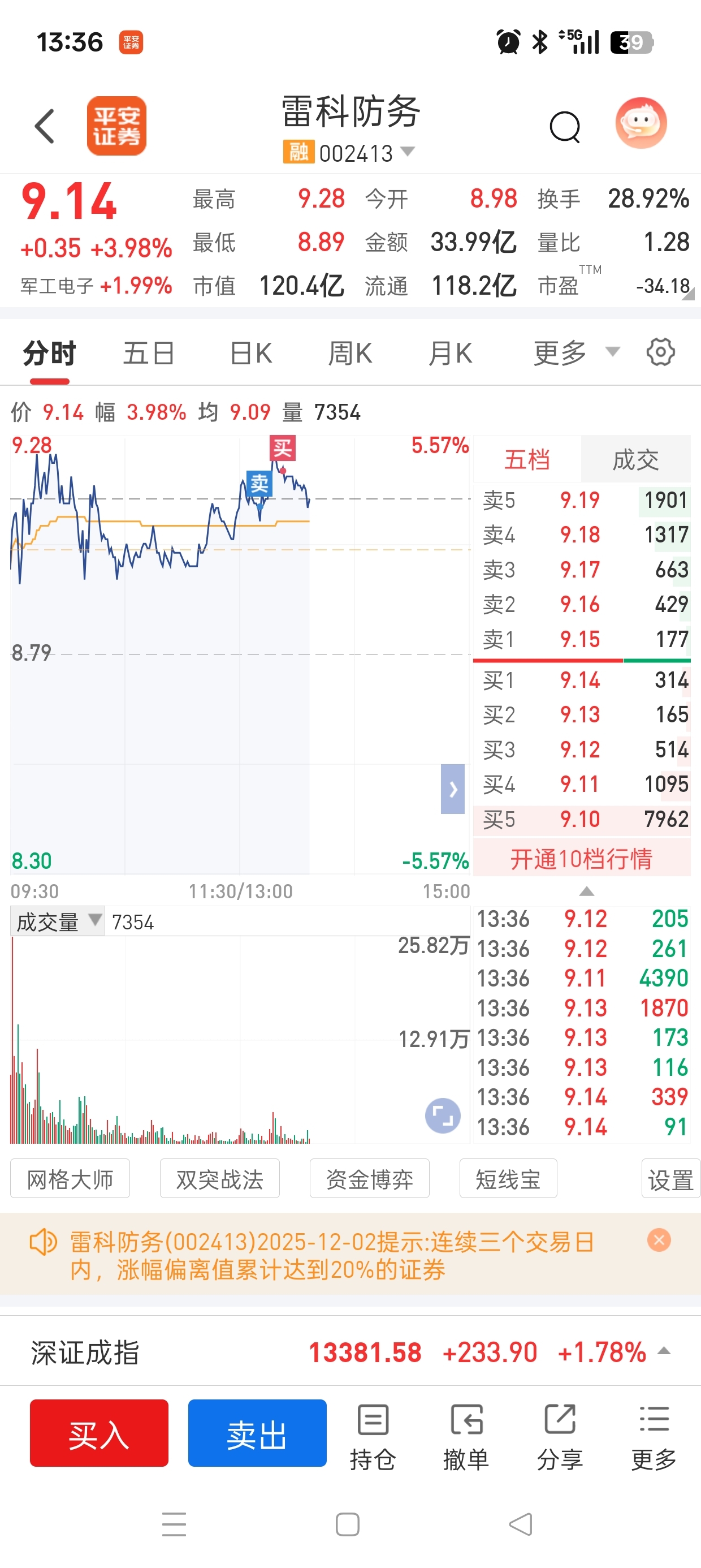 $雷科防务(SZ002413)$ 清仓又按了全仓买进
