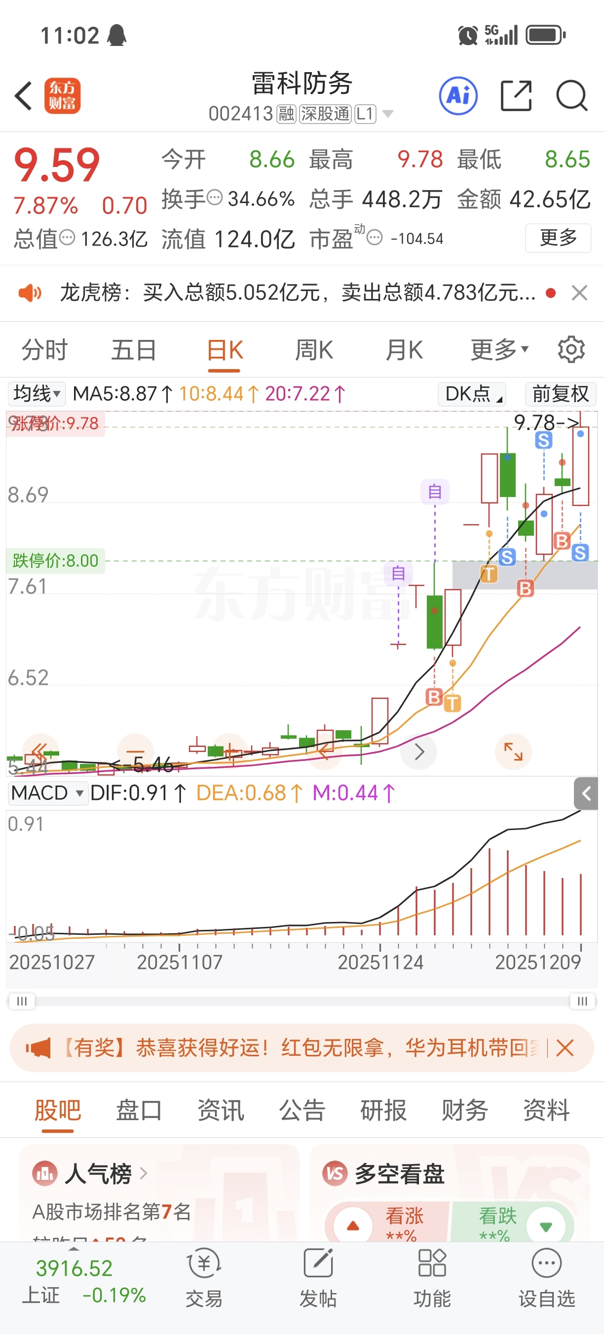$雷科防务(SZ002413)$ 走了。等第二波。别贪心。落袋为安。