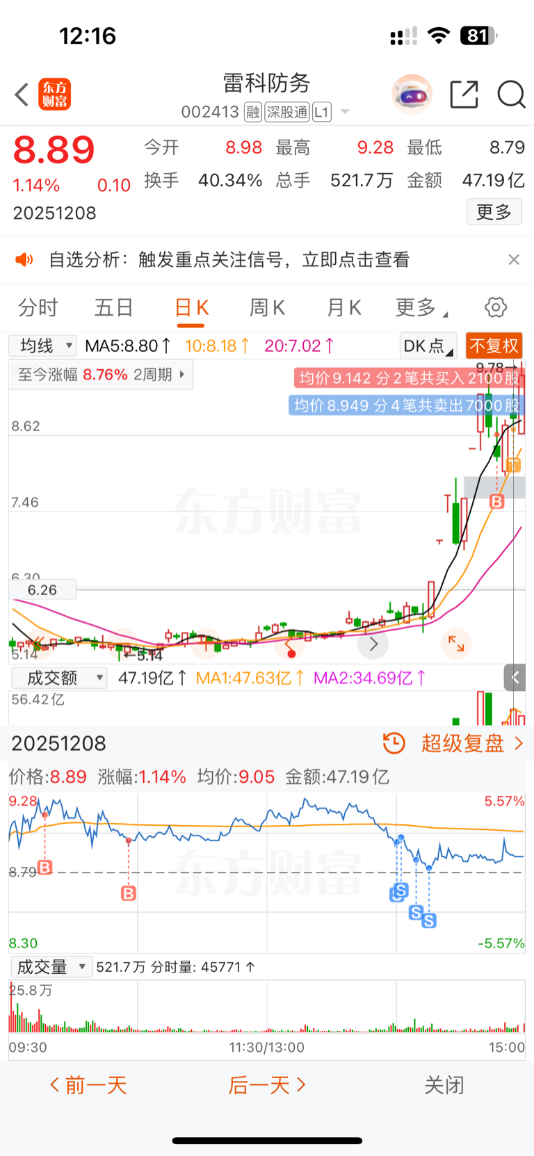$雷科防务(SZ002413)$ 昨天基本都出掉了