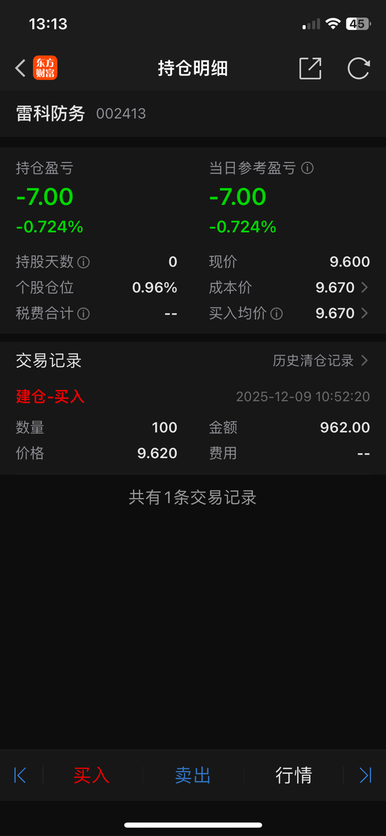 $雷科防务(SZ002413)$ 一手上车,明天的猪脚饭看你了