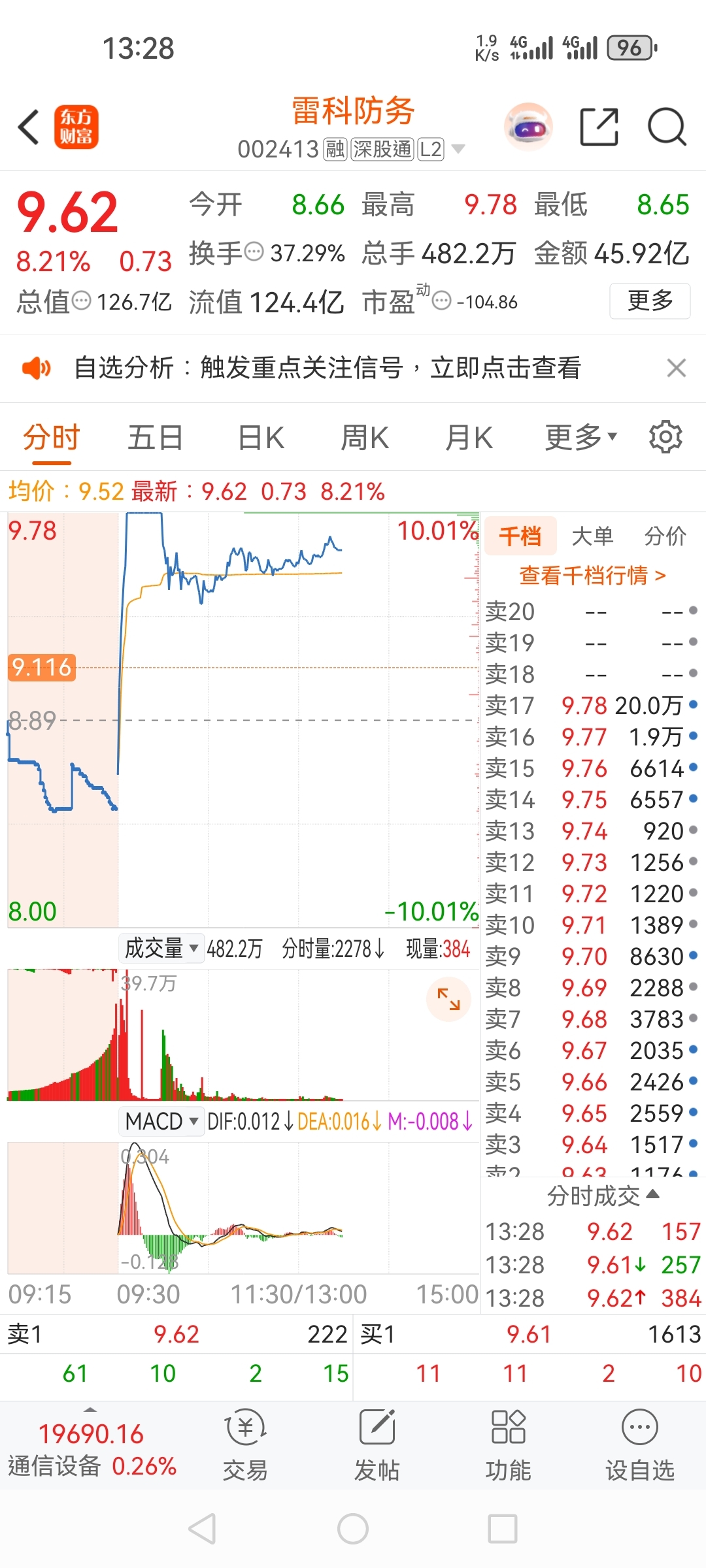 $雷科防务(SZ002413)$ 顶上还有25万手