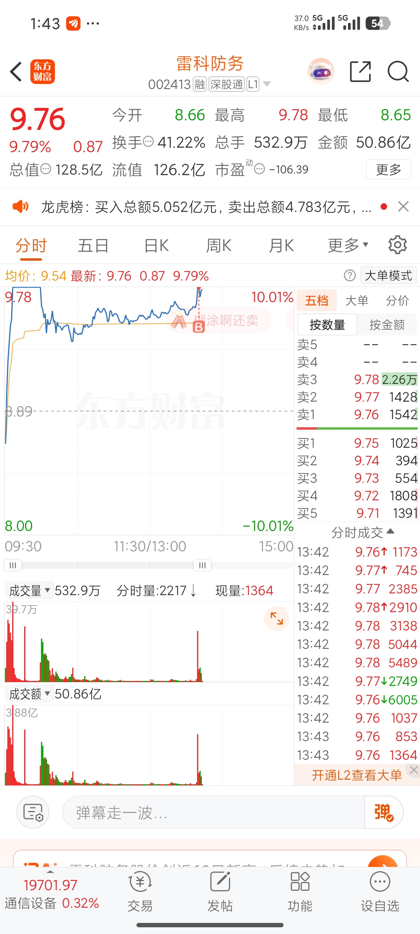 $雷科防务(SZ002413)$ 我打的这是个粑粑,这是板 唉。。。