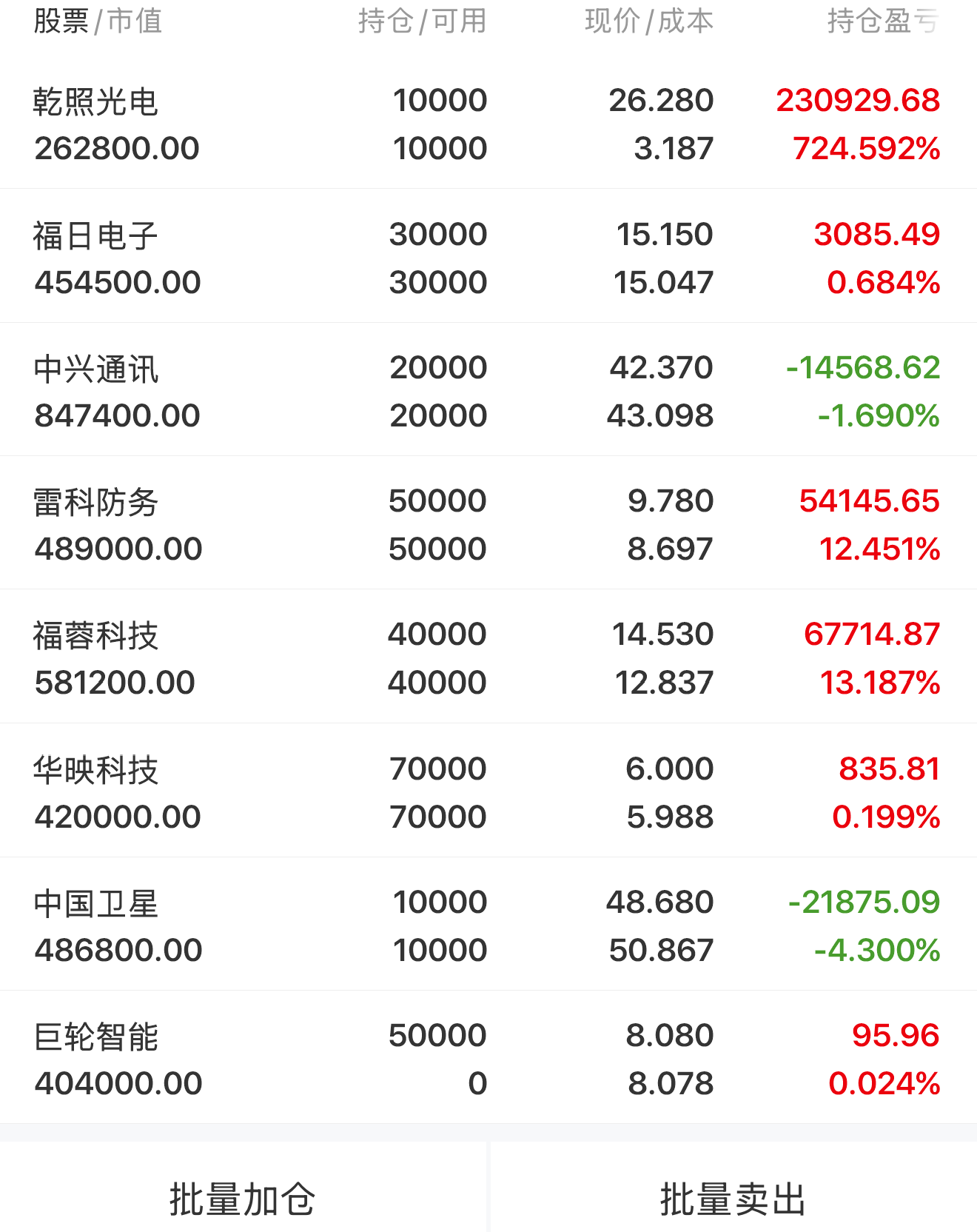$乾照光电(SZ300102)$:今天早盘冲高,在正6点左右就做了减法,现在成本已经降到底到了三块多了。该股是商业航天+砷化镓电池+三季报增长+CPO的叠加概念,公司砷化镓太阳能电池产品出货量稳居国内市场第一,不但和当下市场的主流热点沾边,而且基本面非常不错,业绩也很漂亮,三季报的净利润同比增长80.17%。基本面十分优秀。