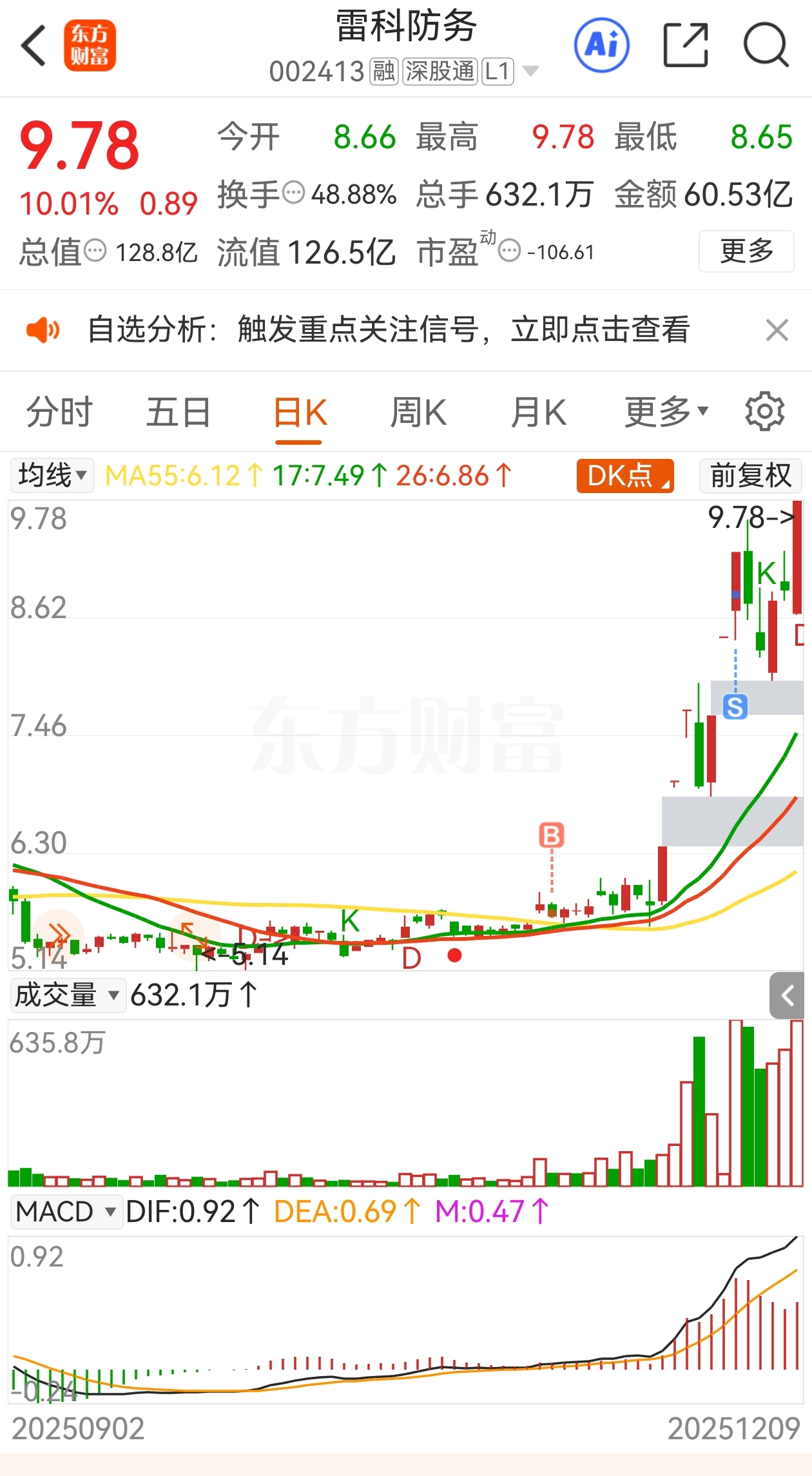$雷科防务(SZ002413)$ 雷子,来几个涨停让我拍个腿