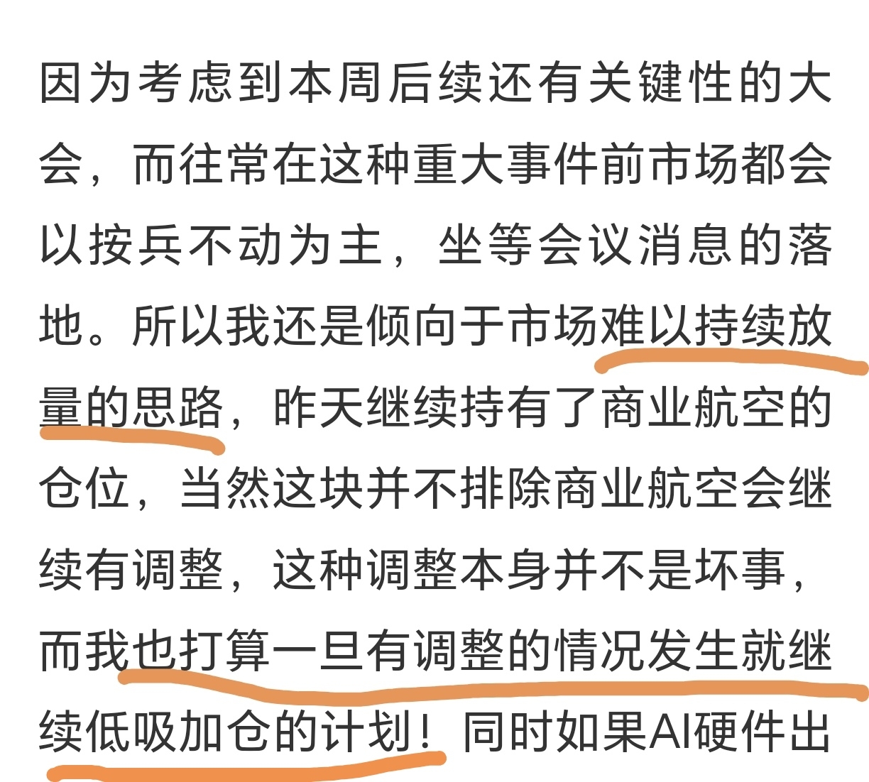 明天我觉得整体盘面还是会偏缩量波折,今天消费起来了一波,但是持续性堪忧,AI硬件和商业航空肯定会互相拉扯,一方起来一方就下去,像今天尾盘时硬件又起来了一些,商业航空明显就下去了一波。那么后续重点我觉得还是放到这两个方向上即可!最后提一句中富电路,今天属于运气不好,刚好遇到了昨晚的减持公告,针对这种突发情况,我觉得如果三天内没有出现修复动作,那么就必须离场,而不是死拿了!还请各位注意纪律!!