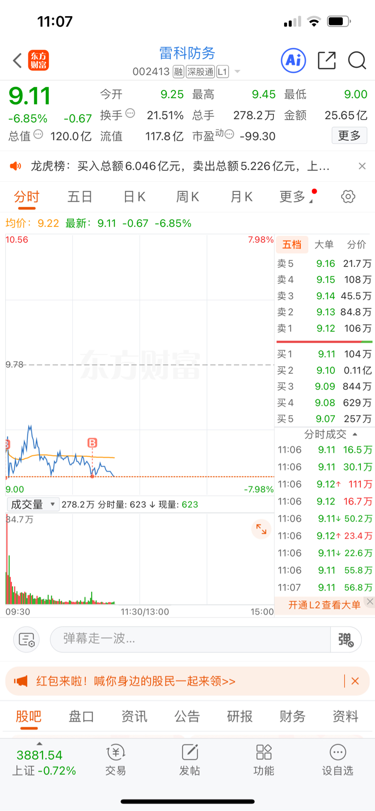 $雷科防务(SZ002413)$ 家人们,别慌,10我挂了一千万撑腰!