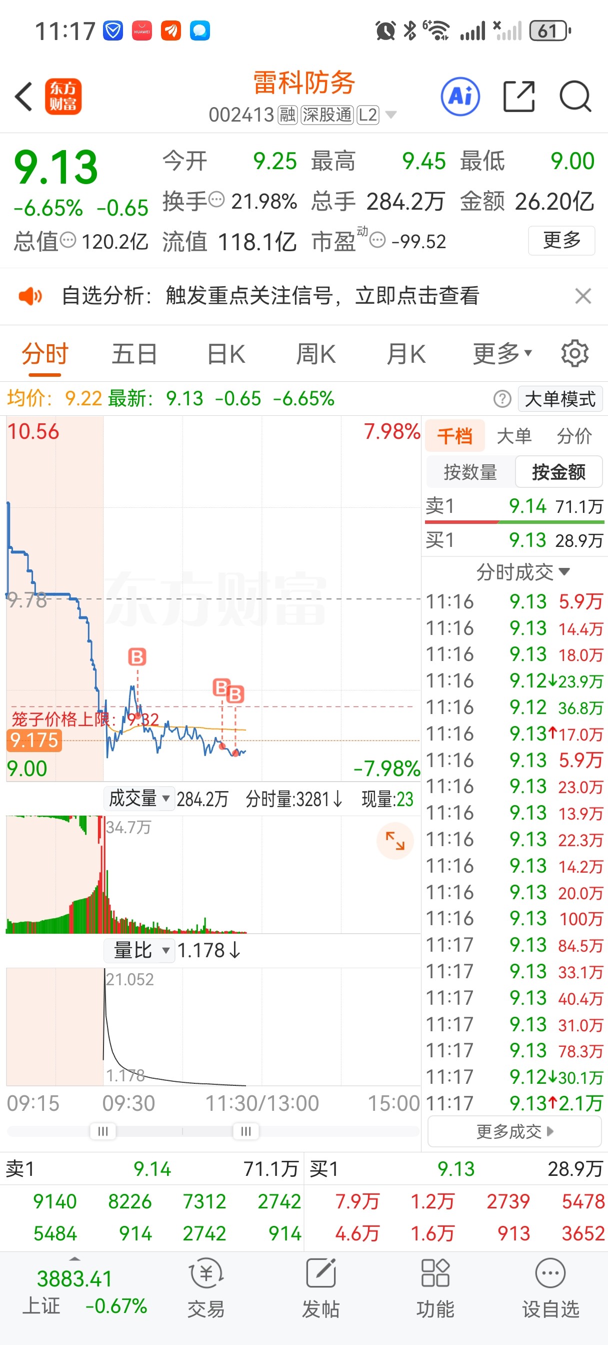 $雷科防务(SZ002413)$ 昨天板上走了!今日-6进场,看好双12长征12甲,坚定持有,朋友们咱们拭目以待。