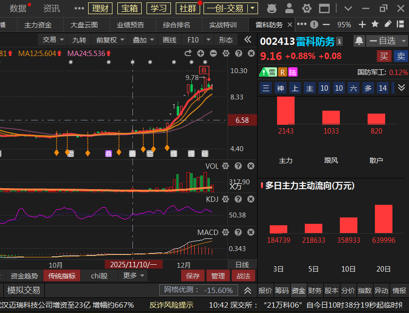 主力进多出少,加码买进。今天上午净买2千多万。