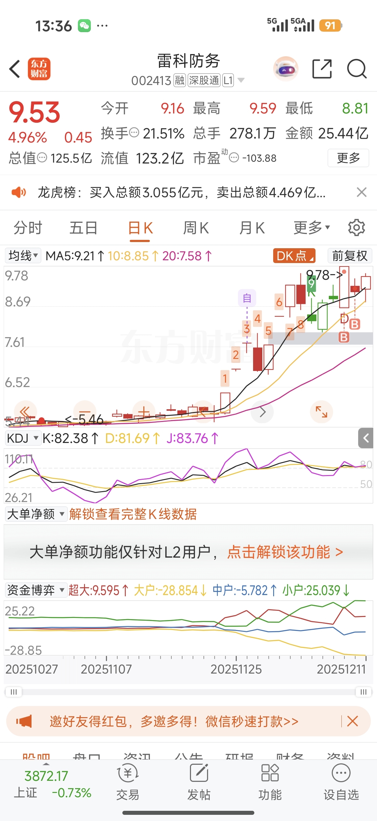$雷科防务(SZ002413)$ 底部大长腿是买入信号