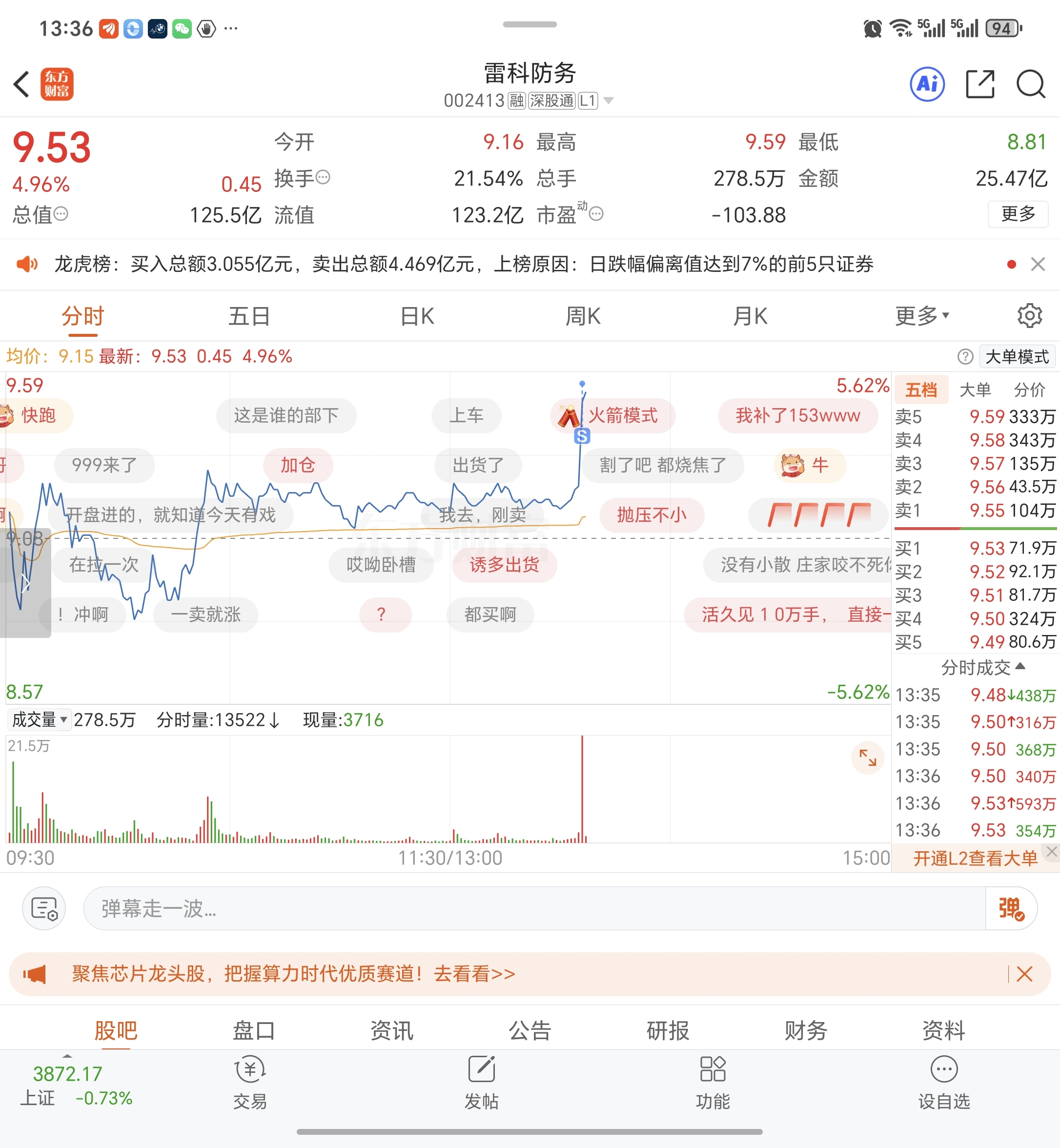 $雷科防务(SZ002413)$ 全仓s了兄弟们