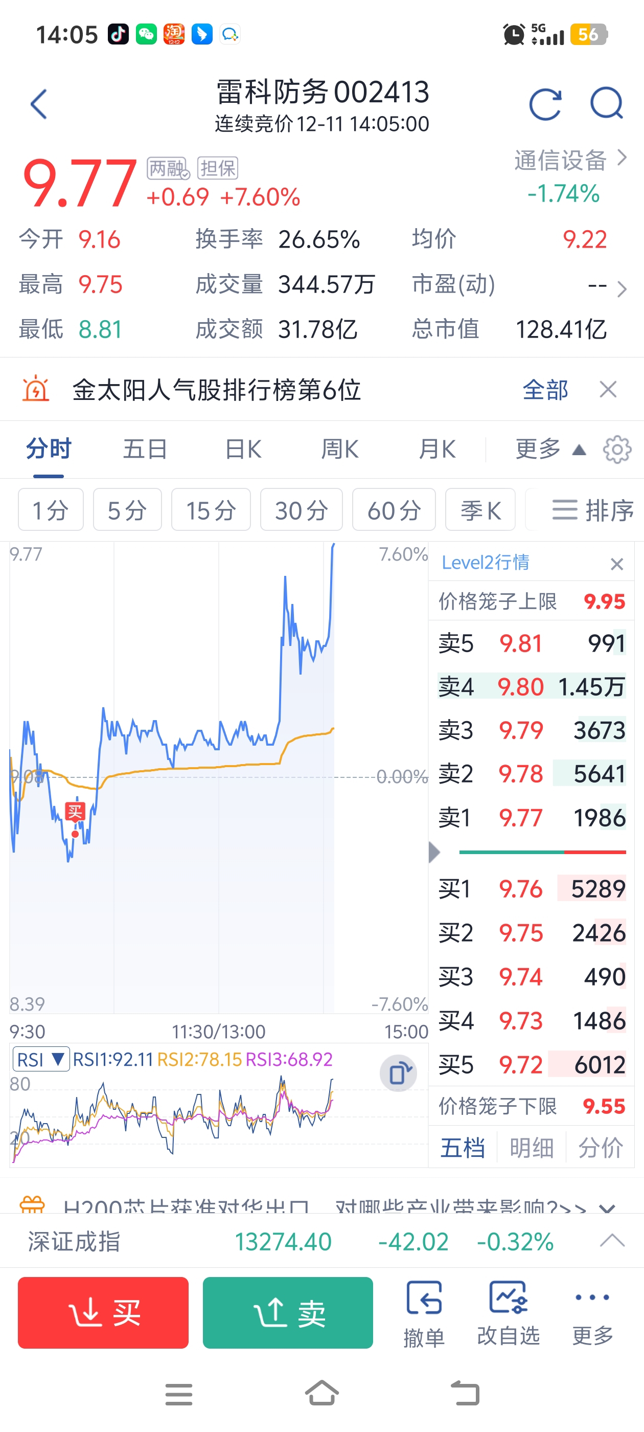 $雷科防务(SZ002413)$ 昨天卖,今天买,有肉吗