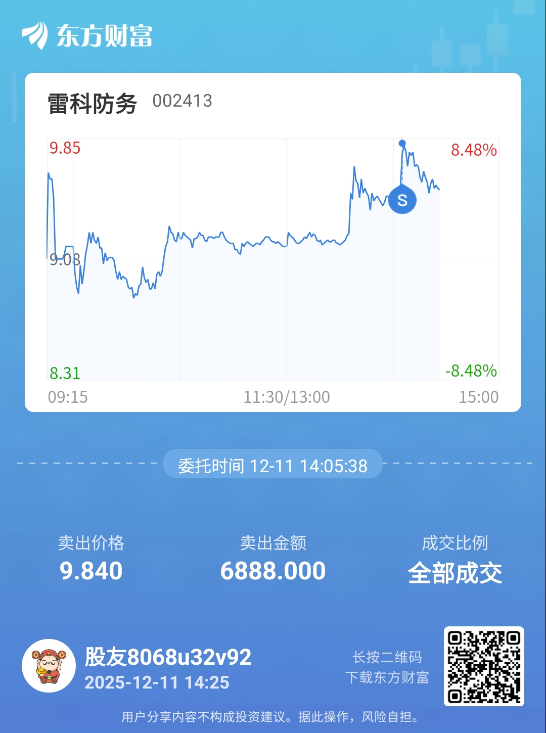 温馨提示: 1.根据《证券法》规定,禁止编造、传播虚假信息或者误导性信息,扰乱证券市场;2.用户在本社区发表的所有资料、言论等仅代表个人观点,与本网站立场无关,不对您构成任何投资建议。用户应基于自己的独立判断,自行决定证券投资并承担相应风险。《东方财富社区管理规定》