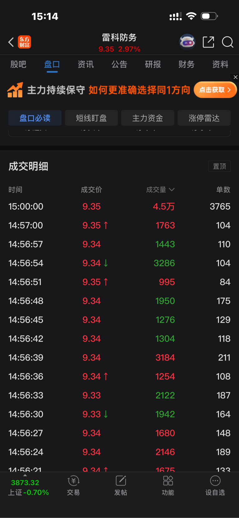 $雷科防务(SZ002413)$ 最后买入4.5万 谁说明天走低 明天高开这个价位买不到了