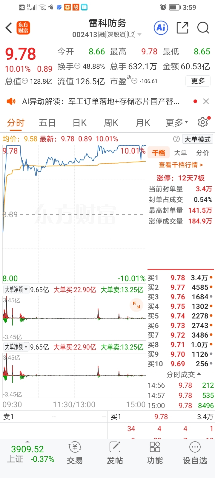 $雷科防务(SZ002413)$ 前期高位出局,又来参与第二波。