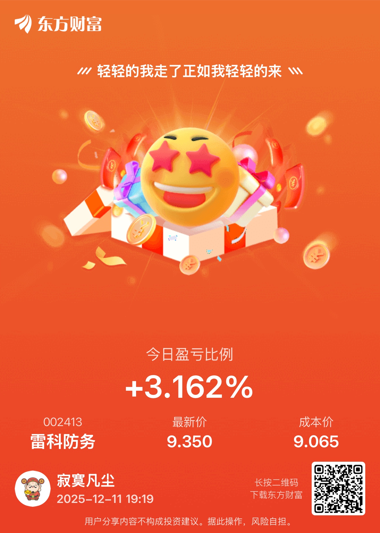 $雷科防务(SZ002413)$ 今天买了两只股票,雷科整体没啥大问题但是不如顺灏股份强势,所以我尾盘做了个T,不能把鸡蛋放在一个篮子里!希望明天雷科能突破一下,拭目以待吧