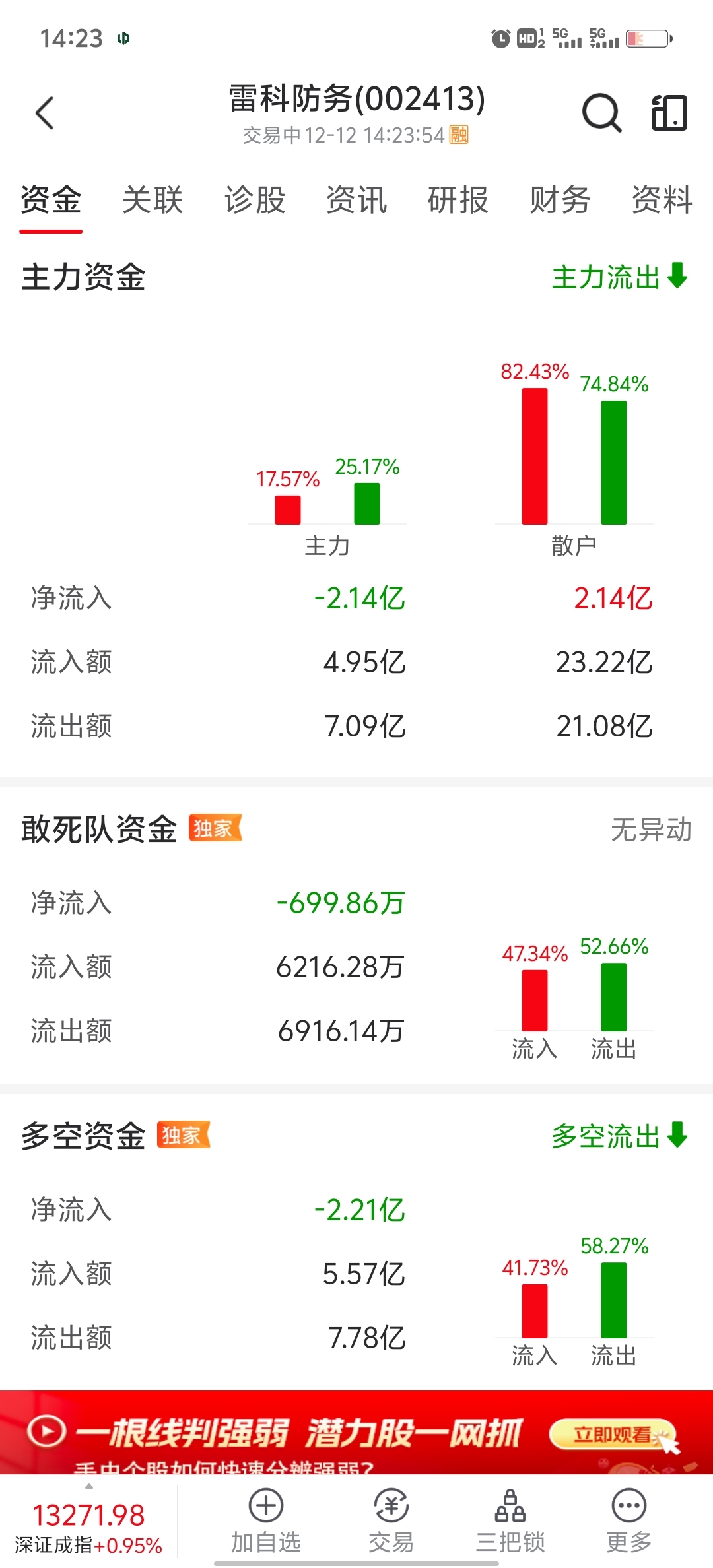 $雷科防务(SZ002413)$ 我只能说,主力,你是真心牛逼,大盘这样都能绿,买你我认倒霉