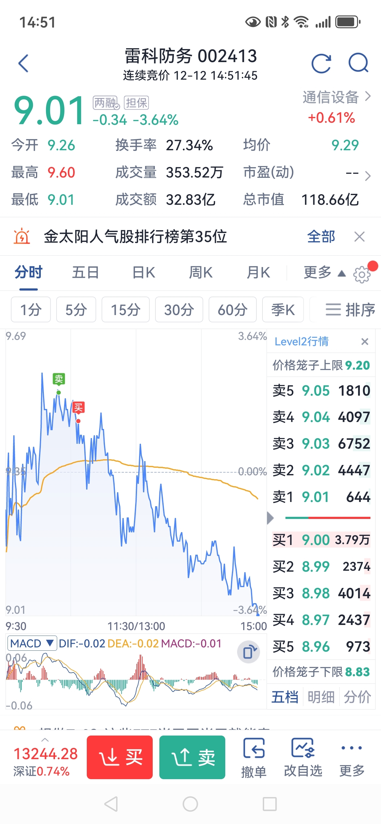 $雷科防务(SZ002413)$ 以为是赚了菜钱,想不到挂在山顶了