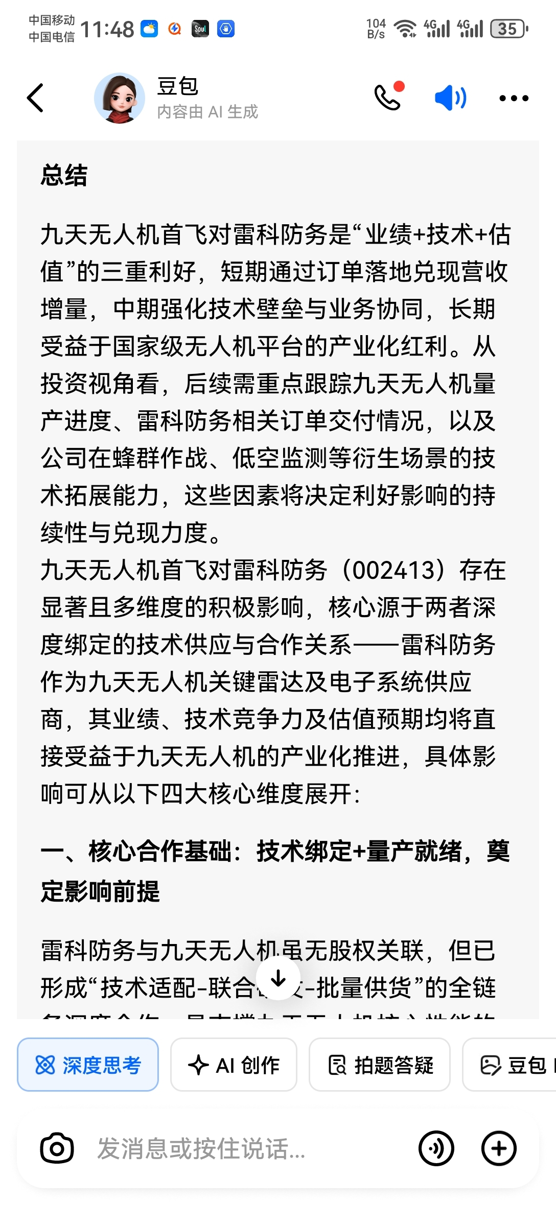 $雷科防务(SZ002413)$ 九天能带动你起飞吗?