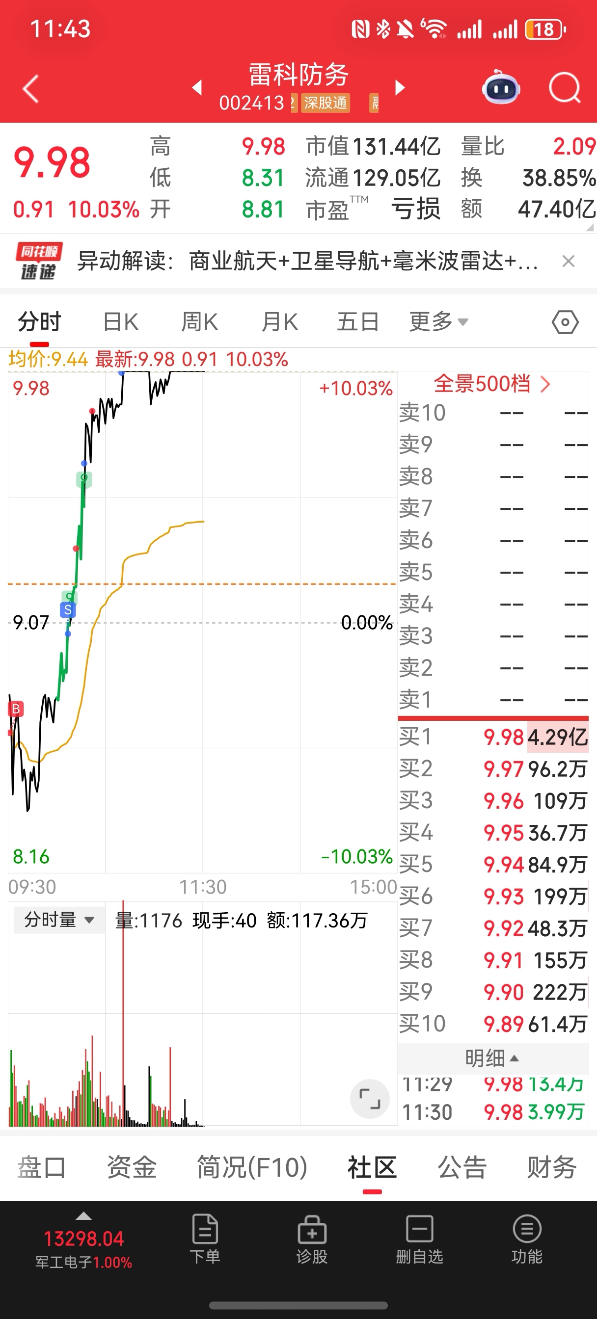 $雷科防务(SZ002413)$ T飞了