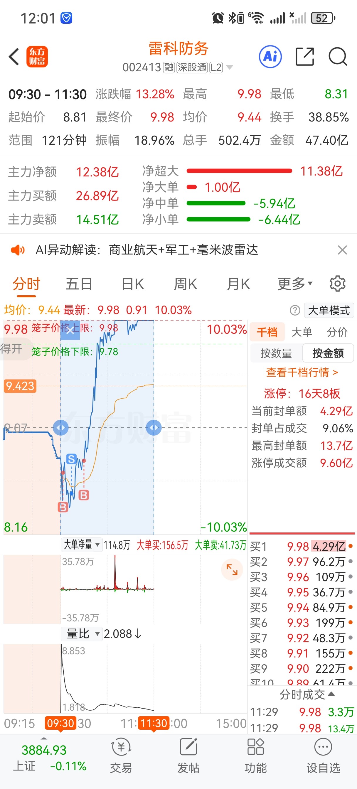 $雷科防务(SZ002413)$ 今日-6做了个倒T,好在后知后觉-3接回来了,但是只接了半仓,在航发-5接了半仓。一顿骚操作,自己都服了自己