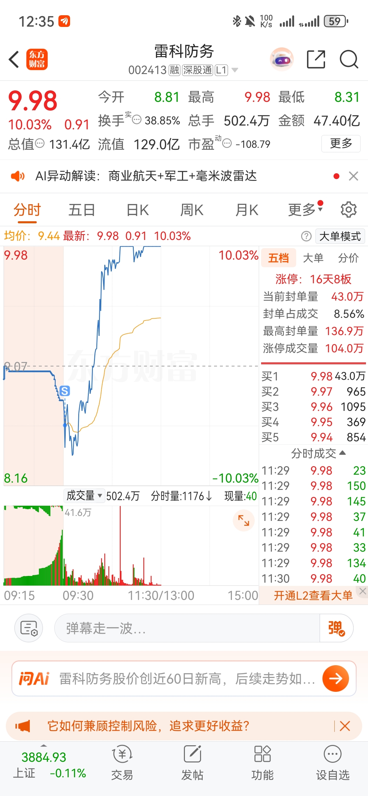 $雷科防务(SZ002413)$ 哥哥别搞