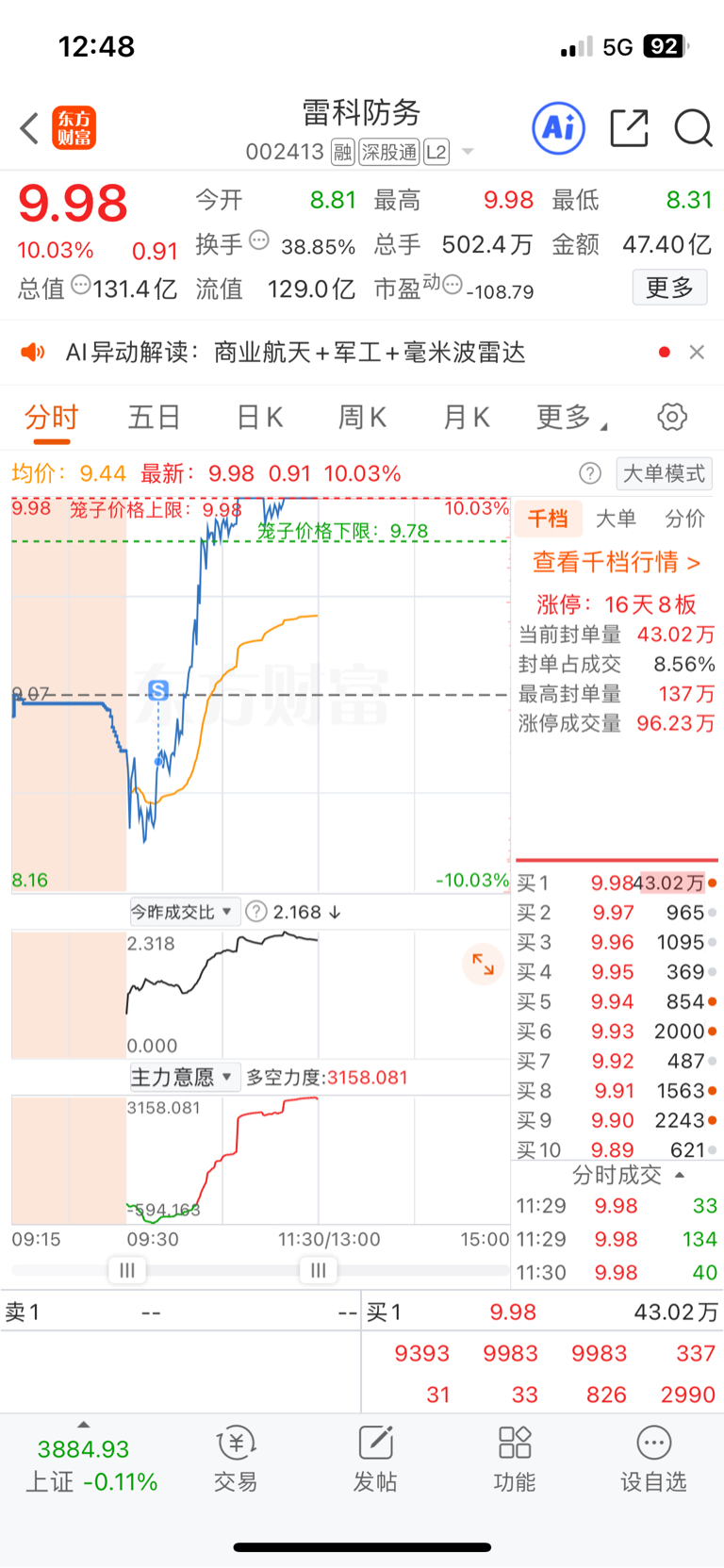 $雷科防务(SZ002413)$ 难受 死了亏2000走的在上周5红2点买的