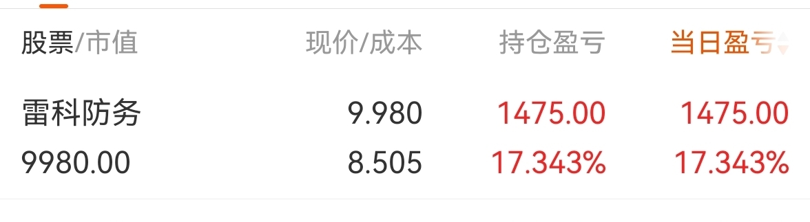 $雷科防务(SZ002413)$ 今天刚加的仓, 明天不至于跌停吧