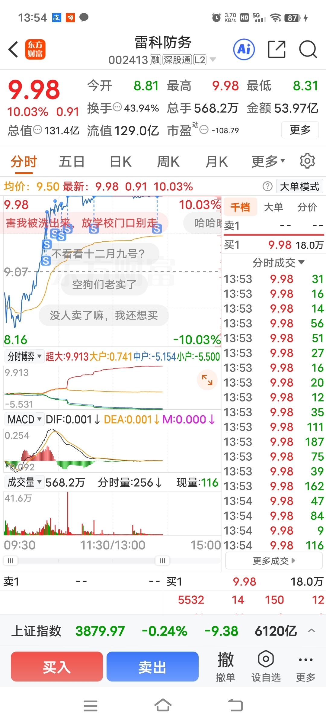 $雷科防务(SZ002413)$ 非得让我卖完你才封得住!