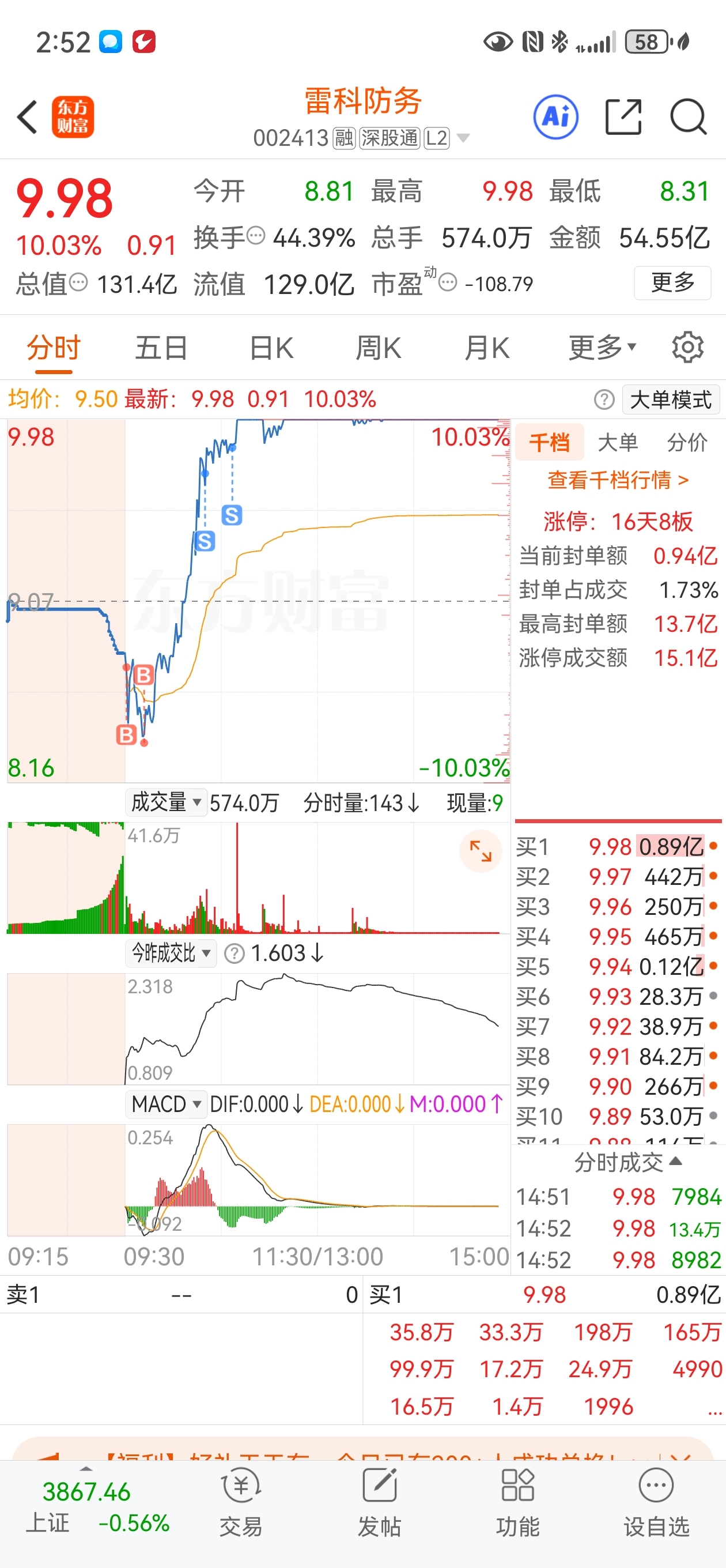 $雷科防务(SZ002413)$ 今天操作有瑕疵