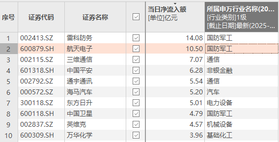 资金风向标 | 雷科防务、航天电子获大额资金流入