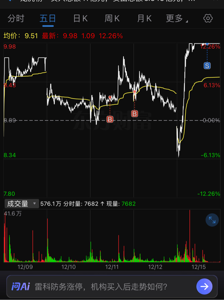 $雷科防务(SZ002413)$ 但凡你开盘直接往上走,我都高看你一眼