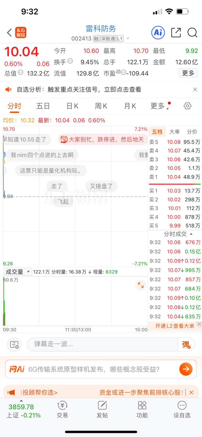 $雷科防务(SZ002413)$ 今天你帮我接盘!明天我帮你抬轿!