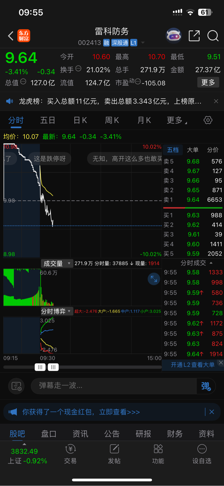 $雷科防务(SZ002413)$ 有什么可跑的?