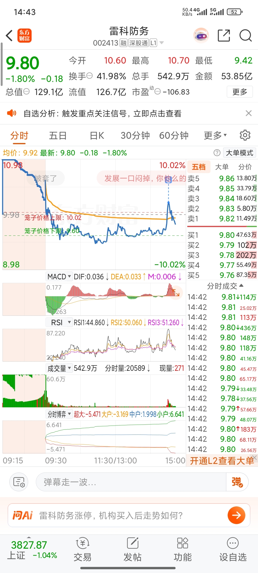 $雷科防务(SZ002413)$ 感谢大哥放我走了