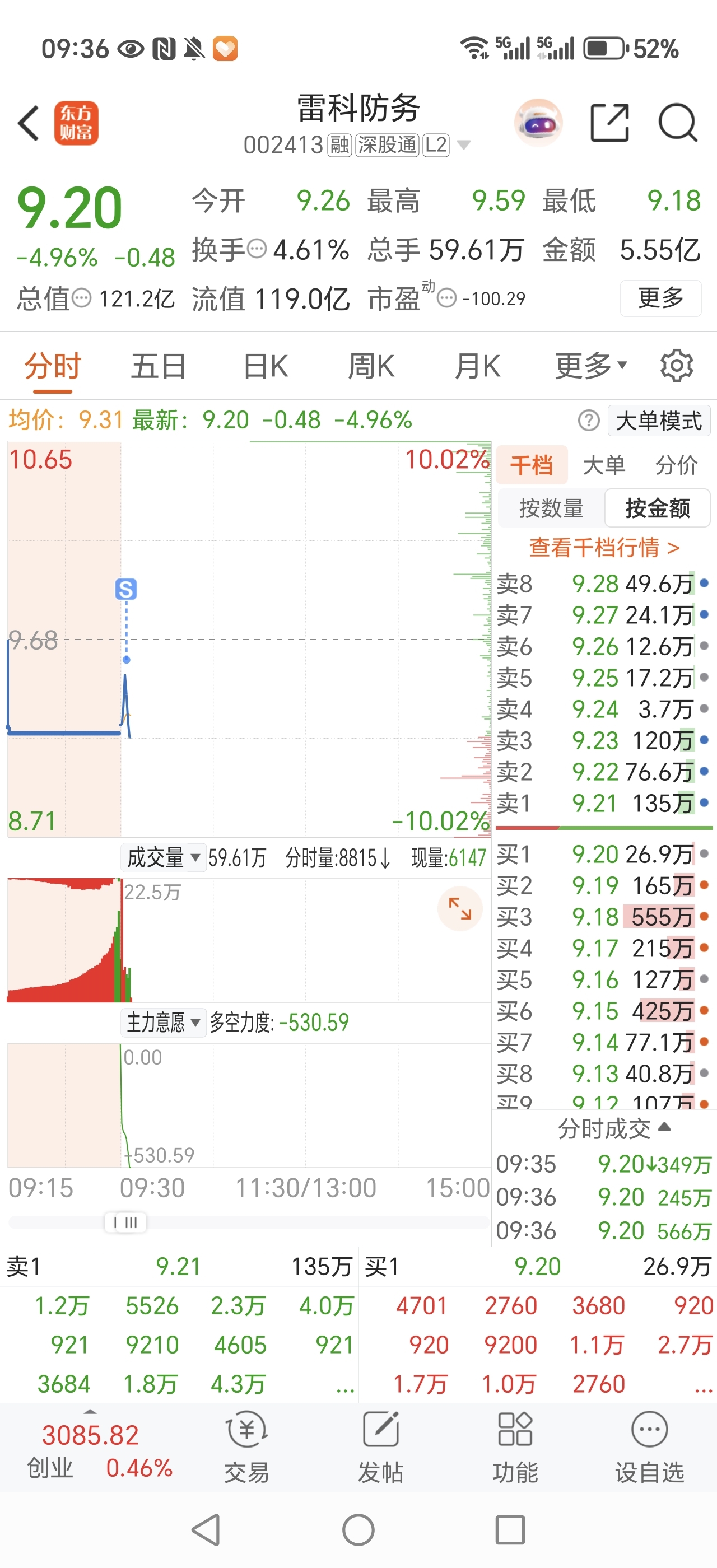 $雷科防务(SZ002413)$ 还好跑得快啊,挣了九十多,