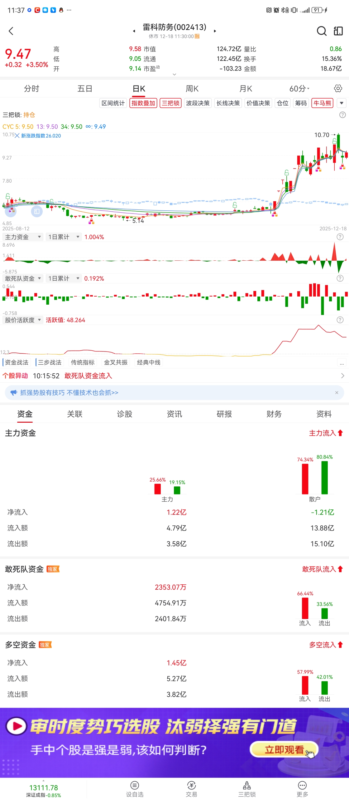 $雷科防务(SZ002413)$ 怎么好多都在都说散户在进,可怎么看都是散户在出,主力柚子在吸,有懂的吗,指点一下。