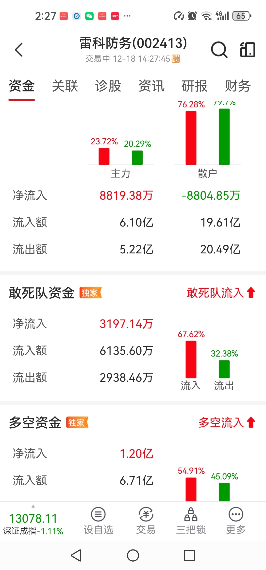 $雷科防务(SZ002413)$ 今天早上主力你进那么多是为了什么?