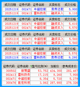 12.19雷科防务、中超控股、新易盛、胜宏科技点评