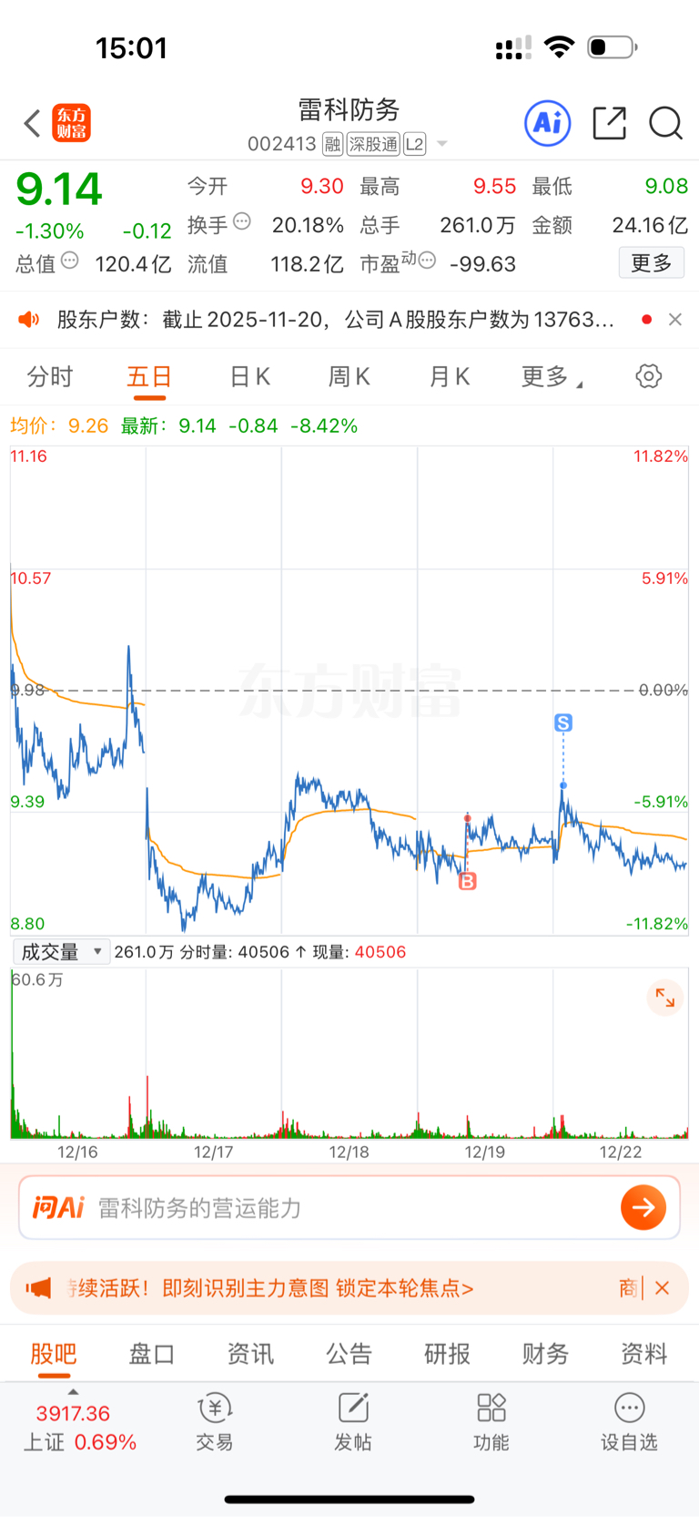 $雷科防务(SZ002413)$ 杂毛,还好我跑得快。明天看要不要回来