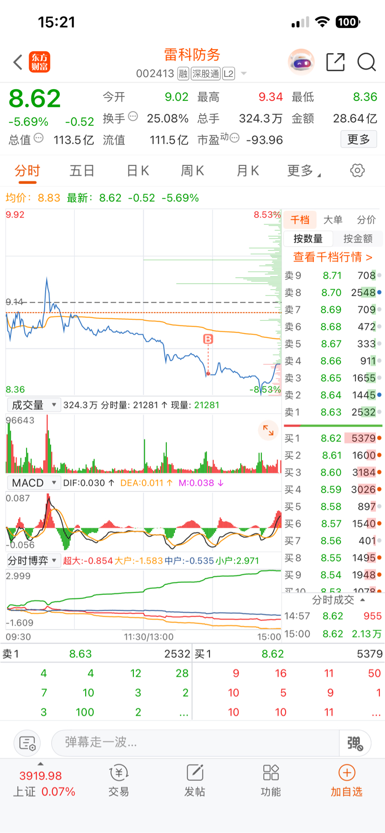 $雷科防务(SZ002413)$ 你就跌吧小舅子