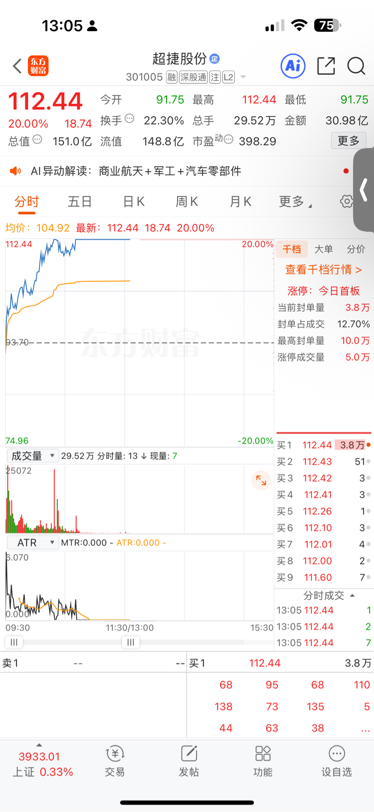 妖股全涨停了,雷防前两个星期都是T1,今天车尾了